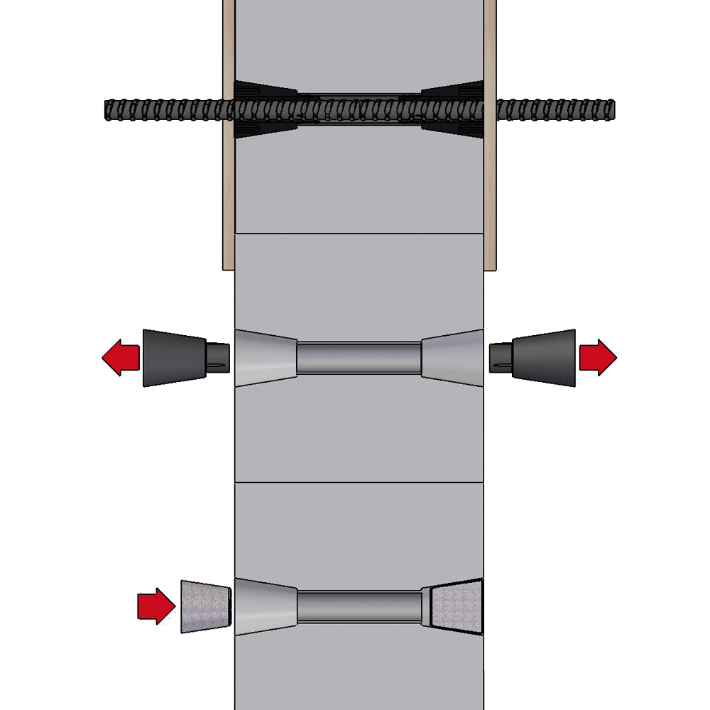 - Schalungsabstandhalter zusammensetzen und einbetonieren (Schalungsabstandrohr 10 cm kürzer schneiden)