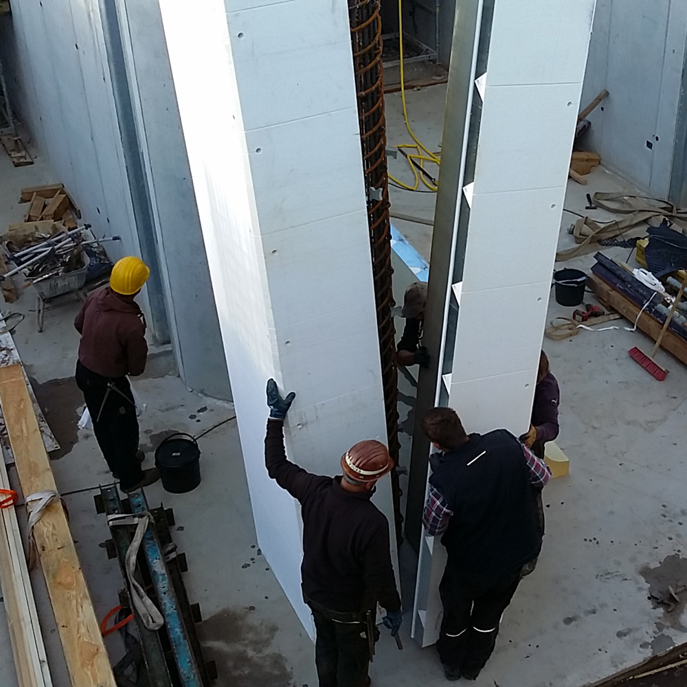 - Schalungsaufwand vor Ort entfällt, die Schalungsbauteile werden vorkonfektioniert angeliefert